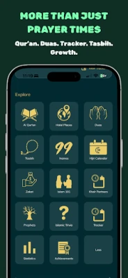 Utöver bön och Qur'an är vår app en skattkammare av islamiska resurser. Utforska Allahs 99 namn, håll dig uppdaterad med Hijri-kalendern och använd den digitala Tasbih-räknaren för dina dhikr, komplett med statistik och möjligheten att lägga till egna adhkar. Den hjälper dig också att upptäcka närliggande moskéer, hitta Halal-platser och erbjuder Hisn'ul Muslim för en rik samling sunnah-duas, organiserade för enkel tillgång och anpassning. Förstärk din kunskap med islamisk trivia och en interaktiv släkttavla över profeterna. Upplev allt detta i en annonsfri miljö, där din integritet garanteras – dina data är säkra och delas aldrig. Appen är helt anpassningsbar för att möta dina individuella behov, inklusive funktioner för säkerhetskopiering och återställning av data. Denna app är utvecklad enbart för Allahs skull, med syftet att gynna muslimer över hela världen i deras andliga resa.