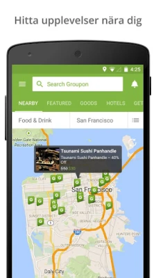 Med fokus på omedelbar tillgång och smidig användning, säkerställer **Grouponappen** att dina önskade upplevelser alltid är inom räckhåll. Glöm krångliga utskrifter; allting hanteras direkt i din mobila enhet. Från att säkra biljetter till en efterlängtad konsert, boka en avkopplande spabehandling, till att unna dig en utsökt middag, möjliggör **Grouponappen** sömlösa köp och inlösen. Dina sparade erbjudanden sorteras bekvämt efter geografisk plats och utgångsdatum, vilket ger dig fullständig överblick och kontroll över dina planer, utan onödigt pappersarbete.
