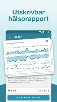 Med MyTherapy får du inte bara kontroll över din medicinering och dina mätvärden, utan också värdefulla insikter om din hälsa över tid. Genom att samla all data i en överskådlig journal kan du identifiera mönster och trender som är avgörande för din vård. Dessa detaljerade hälsorapporter kan sedan enkelt skrivas ut och tas med till läkarbesöket, vilket underlättar en mer informerad dialog med din vårdgivare. MyTherapy är utformad för att ge dig sinnesro och öka din livskvalitet, oavsett om du hanterar en kronisk sjukdom som förmaksflimmer eller strävar efter bättre viktkontroll. Din feedback är ovärderlig för att vi kontinuerligt ska kunna förbättra MyTherapy och säkerställa att den möter dina behov på bästa sätt.