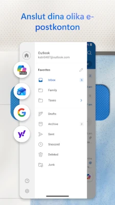 Outlook för Android är appen där miljontals användare samlar e-post, kalendrar och filer. Upptäck den nydesignade appen som effektiviserar din inkorg, hjälper dig att göra mer och håller allt viktigt samlat på ett och samma ställe.