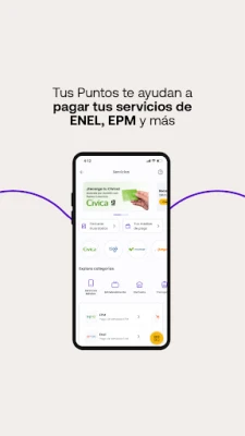Puntos Colombia är ett lojalitetsprogram som erbjuder personliga upplevelser. Samla och lös in Puntos hos partners inom mat, resor, mode, tjänster och mer. Håll koll på ditt saldo, transaktioner och utgående poäng direkt i appen. Använd Puntos för underhållning, hushållstjänster eller mobil påfyllning. Säkra ditt konto enkelt.