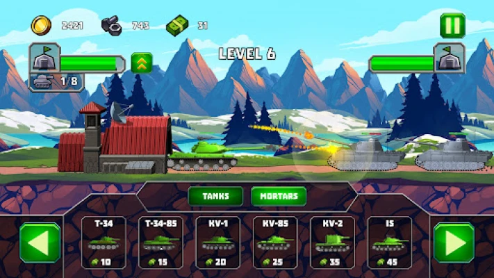 Tank Attack 5 | Tankar 2D är ett spännande 2D WW2-tankspel. Förbered dig för episka bosskamper genom att uppgradera legendariska stridsvagnar som T-34 och Tiger med mynt och delar. Anpassa dina fordon med kamouflage på olika platser och upplev välutvecklad fysik.