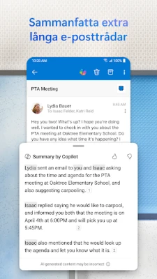 Med Outlook för Android samlas allt du behöver inom räckhåll, vilket transformerar hur du hanterar din dagliga planering. Dra nytta av kraftfulla funktioner som intuitiva svepgester och anpassningsbara filter för att hålla din inkorg organiserad och överskådlig. Appen är utformad för att ge dig full funktionalitet även när du är på resande fot, med sömlös integration av Word-, Excel- och PowerPoint-dokument. Detta gör det möjligt att granska och redigera viktiga filer direkt från din mobila enhet, vilket säkerställer att du alltid är produktiv, oavsett var du befinner dig.