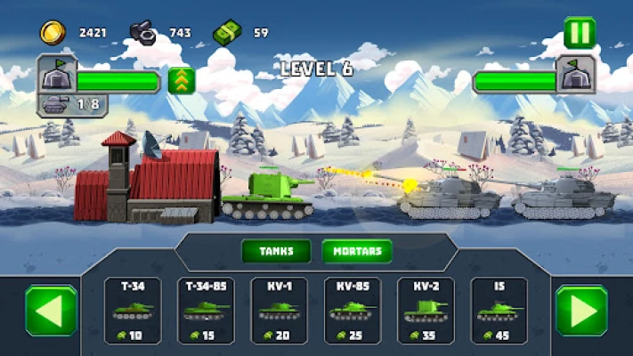 Tank Attack 5 | Tankar 2D är ett spännande 2D WW2-tankspel. Förbered dig för episka bosskamper genom att uppgradera legendariska stridsvagnar som T-34 och Tiger med mynt och delar. Anpassa dina fordon med kamouflage på olika platser och upplev välutvecklad fysik.