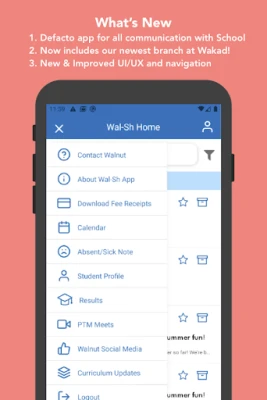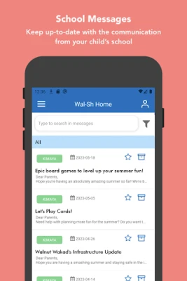 Med Wal-Sh slipper du oroa dig för att missa viktiga uppdateringar. Appens meddelandefunktion fungerar som din personliga informationscentral, där allt från cirkulär och viktiga meddelanden till veckans läxor och kommande evenemang samlas. Du får omedelbara push-notiser för ny information, vilket betyder att du kan ta del av skolans meddelanden precis när och var det passar dig. Oavsett om det gäller schemamändringar, aktiviteter eller allmänna nyheter från Arpita Karkarey's Walnut School, hålls du alltid informerad och uppdaterad utan att behöva söka på flera ställen.