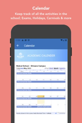 För att underlätta planeringen erbjuder Wal-Sh en tydlig översikt över skolans kalender. Här kan du enkelt se alla kommande evenemang, helgdagar och viktiga datum, vilket hjälper dig att organisera din familjs schema effektivt och säkerställa att du aldrig missar en viktig händelse. Skulle ditt barn bli sjuk och inte kunna närvara i skolan, har Arpita Karkarey's Walnut School även integrerat en smidig funktion för sjukanmälan. Skicka ett frånvaromeddelande direkt via appen, så kan skolan snabbt registrera informationen och till och med skicka en liten tanke om god bättring. Wal-Sh är mer än bara en app – det är din partner för en enklare och mer uppkopplad skolvardag.